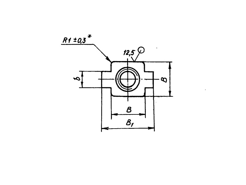 Конструкция гайки состоит из корпуса и плоского основания с отверстием.