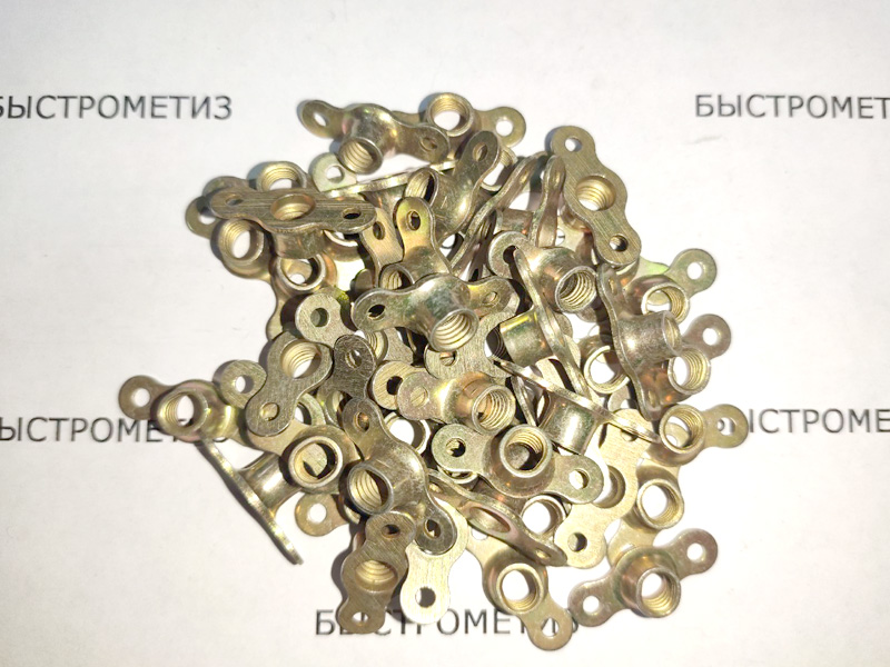 Конструкция гайки состоит из цилиндра с овального основания с отверстия и сквозного осевого отверстия с резьбой.