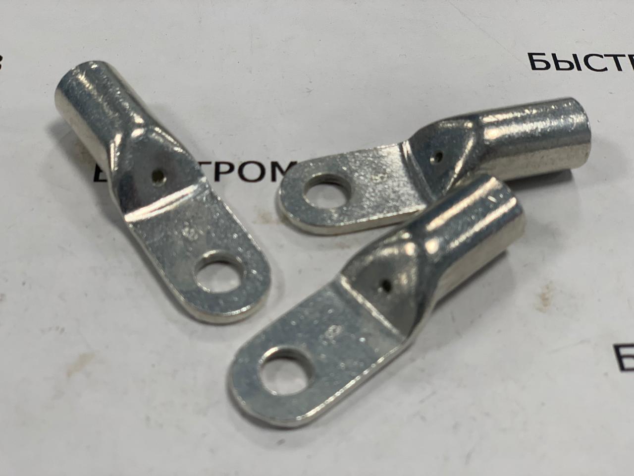Конструкция наконечника представляет собой кусок трубки, сплюснутой с одной стороны, просверленным отверстием в сплющенной части и глухим ответрстием с другой стороны, для обхвата электропровода.