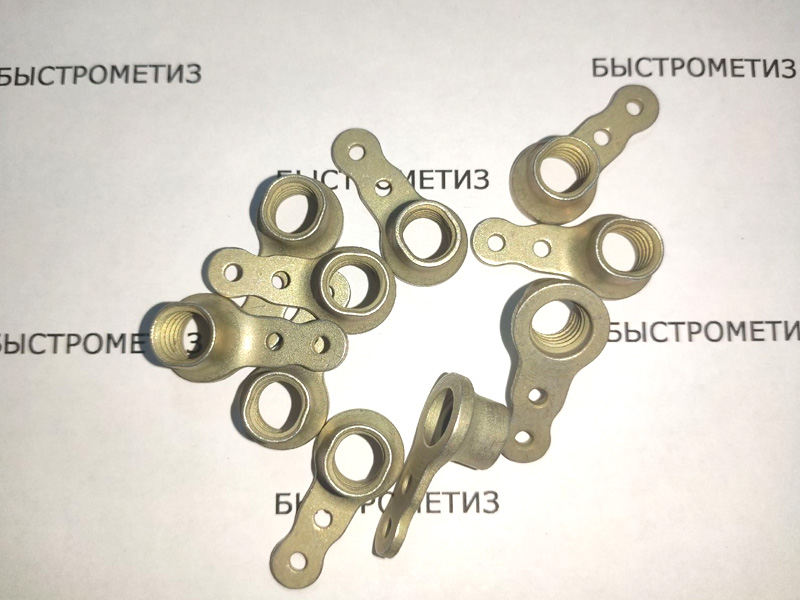 Конструкция гайки состоит из цилиндра с внутренним отверстием с резьбой и овальное основание, в котором два отверстия для крепления.