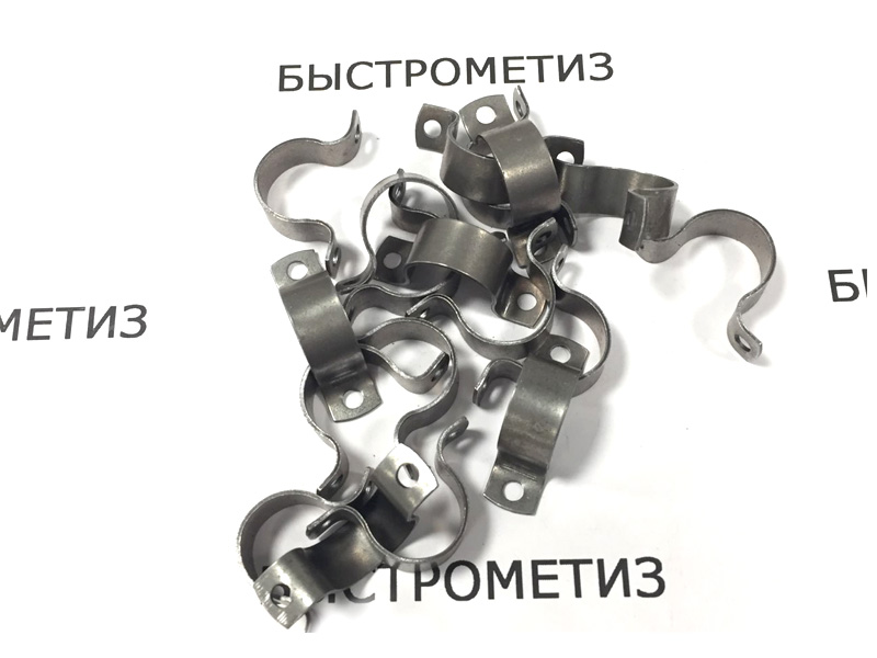 Хомут состоит из изогнутой металлической пластины с отверстиями.