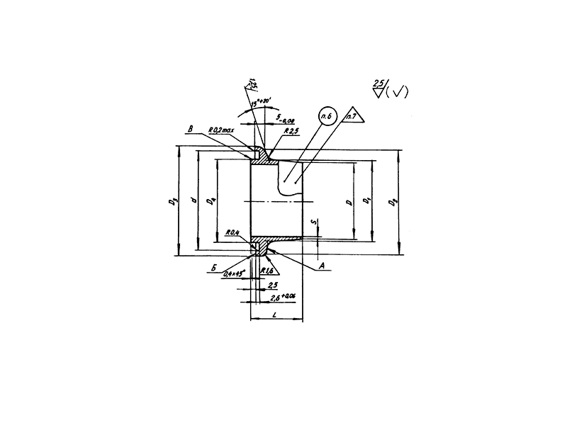 Пример наименования и обозначения фланца для трубопровода Dн=40 мм, длиной L=25 мм и толщиной s=1,5 мм из материала АМг6-М: