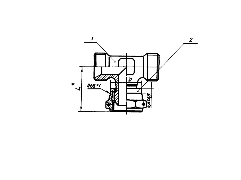 Конструкция состоит из трубчатого тройника с резьбами с трех сторон и гайкой.