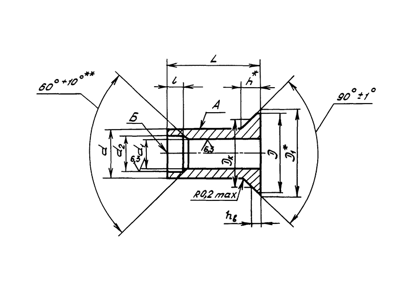 ОСТ 1 11300-74 Корпусы заклепок с потайной головкой с углом 90 градусов