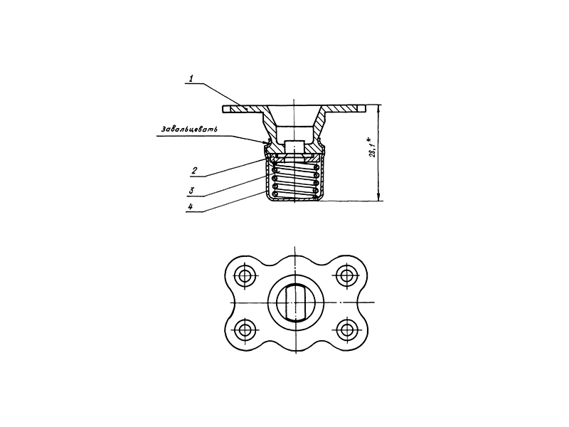 Конструкция корпуса состоит из фланца, шайбы запорной, пружины и колпачка.