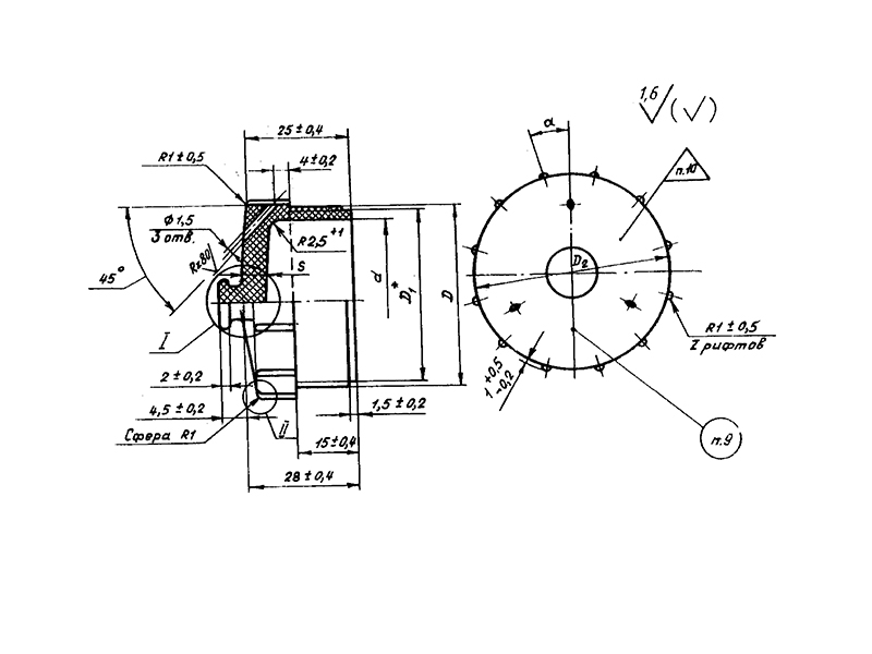 Отраслевая нормаль 214АТ В замен нормали 214МТ55 метрическая резьбой со свободной посадкой