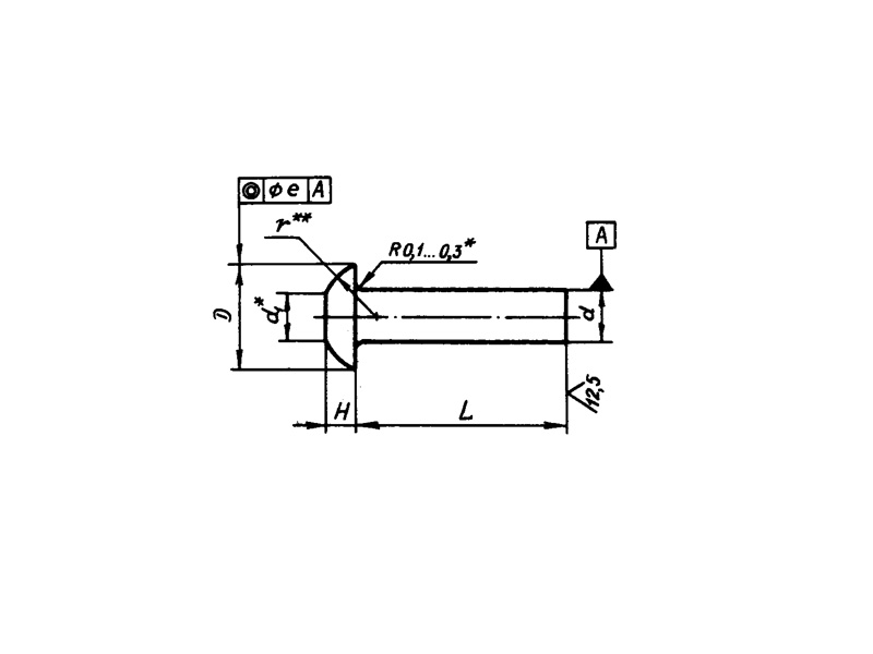 Конструкция заклепки состоит из плоско-скругленной головки и цилиндрического стержня.