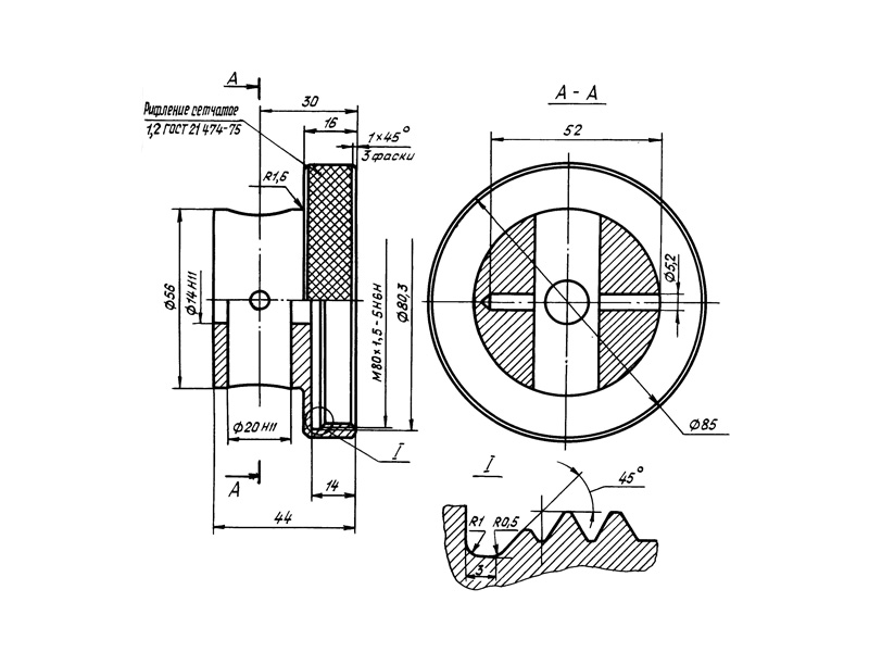 Отраслевая нормаль 214АТ В замен нормали 214МТ55 метрическая резьбой со свободной посадкой