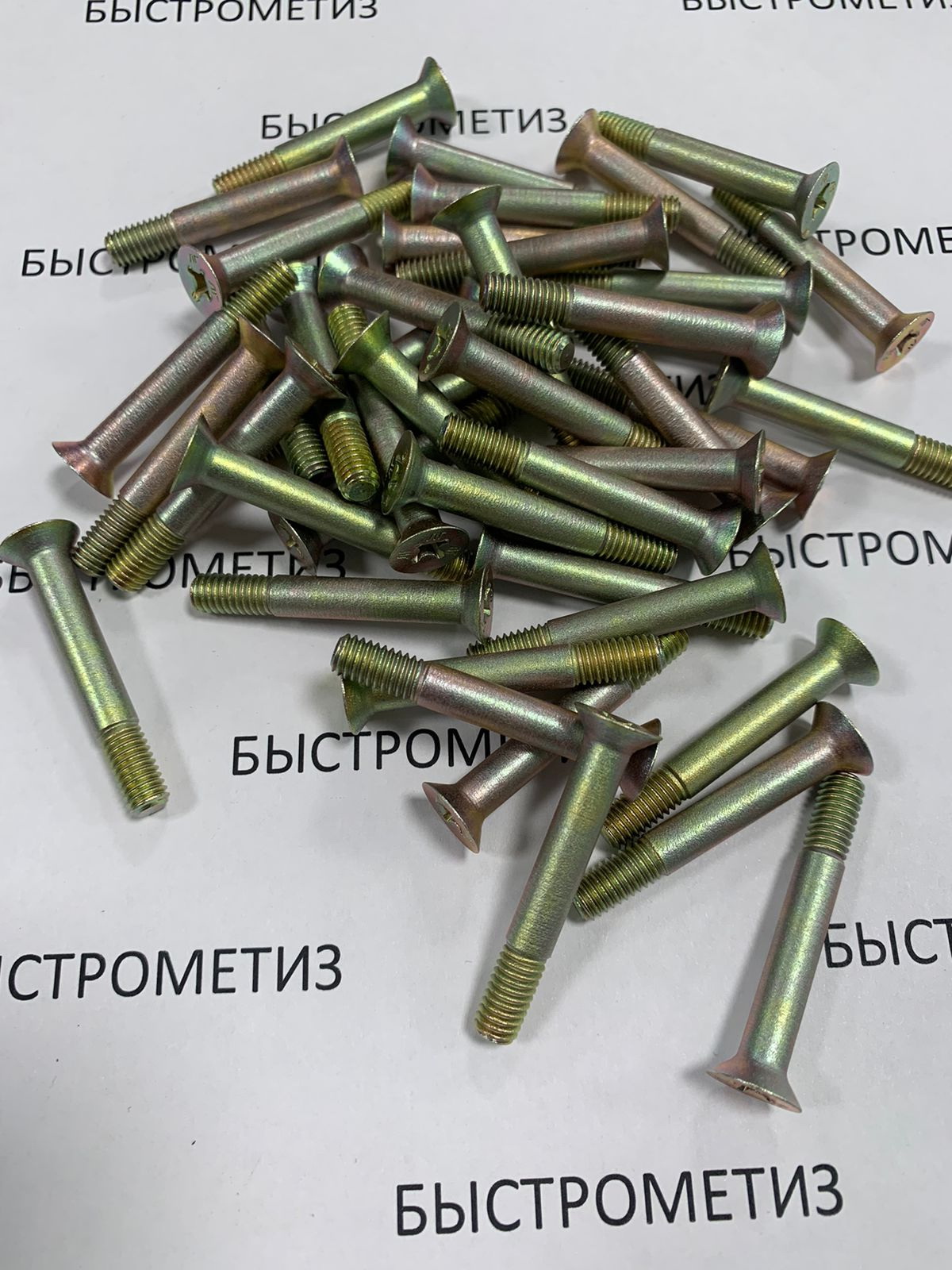 Конструкция болта состоит из потайной головки с крестообразным шлицем и цилиндрического стержня с резьбой.