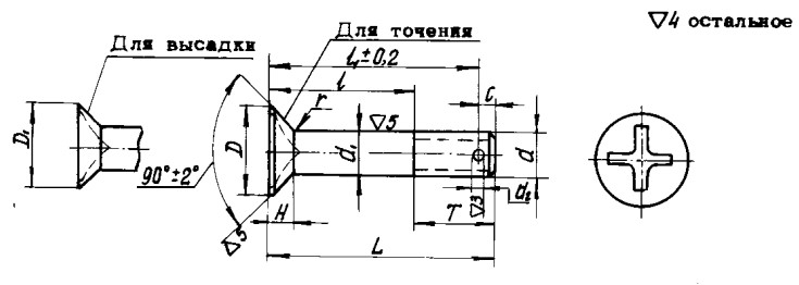 Конструкция болта состоит из потайной головки с крестообразным шлицем и цилиндрического стержня с резьбой.