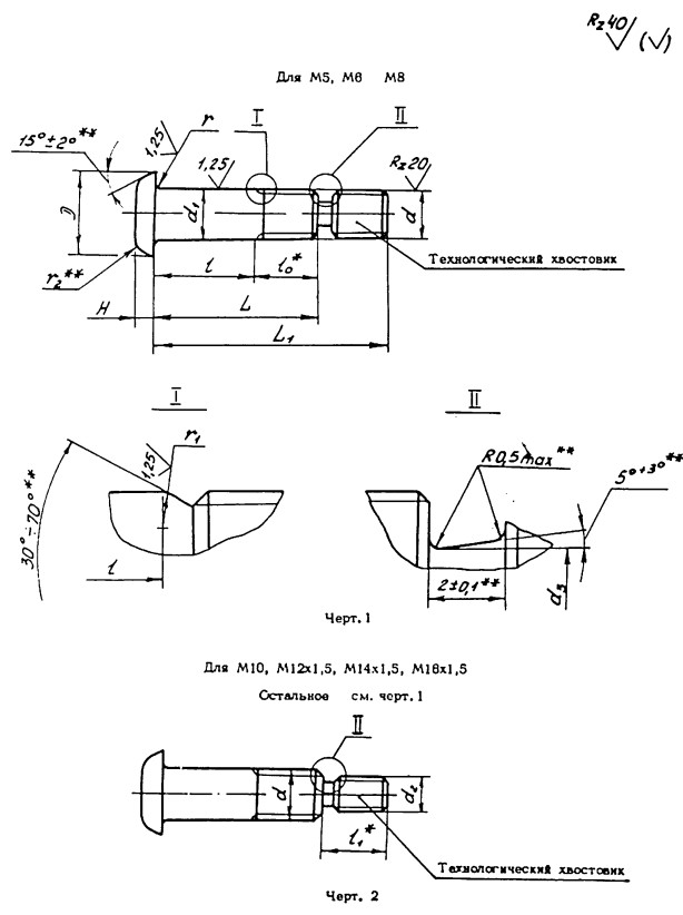 ОСТ 1 31042-79 БОЛТЫ С ПЛОСКО-СКРУГЛЕННОЙ ГОЛОВКОЙ С ТЕХНОЛОГИЧЕСКИМ ХВОСТОВИКОМ