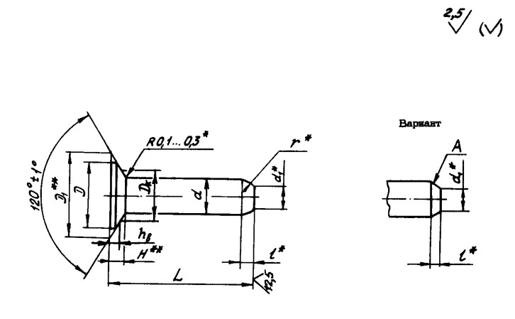 ОСТ 1 34038-78 ЗАКЛЕПКА С ПОТАЙНОЙ ГОЛОВКОЙ с углом 120 градусов
