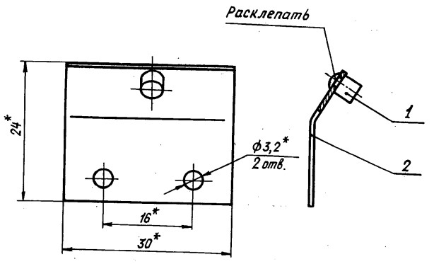 Материал покрытия: после расклепки поз.1 (ограничитель) покрыть лаком УР 231 ТУ 6-10-863-76.