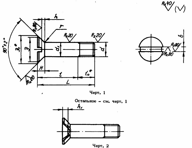 ОСТ 1 31174-80 БОЛТЫ С ПОТАЙНОЙ ГОЛОВКОЙ углом 90 гр. и укороченной резьбовой частью.