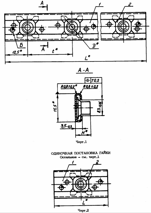 Конструкция профиля состоит из металлической полосы с отверстиями. Поз.1 Профиль (ОСТ 1 37010-80.pdf), Поз.2 Гайка (ОСТ 1 37110-89.pdf)