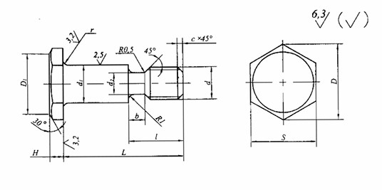 Конструкция болта состоит из шестигранной головки и цилиндрического ступенчатого стержня с резьбой.