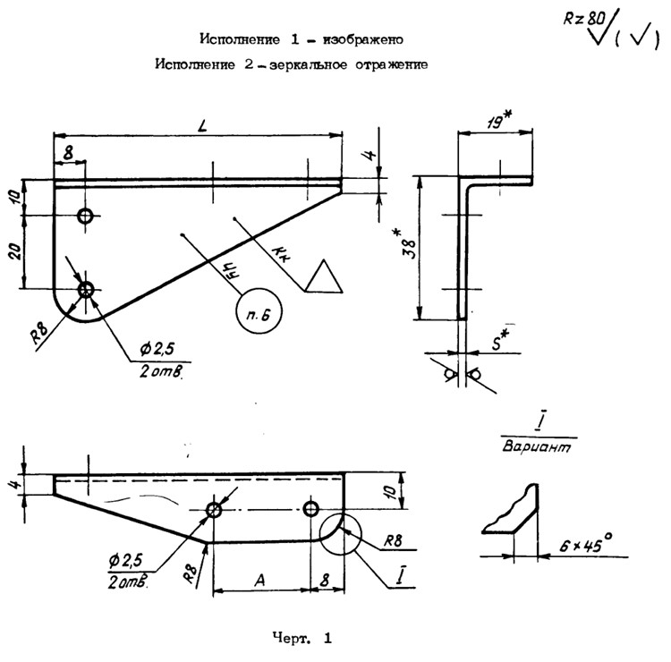 Конструкция состоит состоит из металлического уголка с отверстиями для крепления. Имеет 36 исполнений.