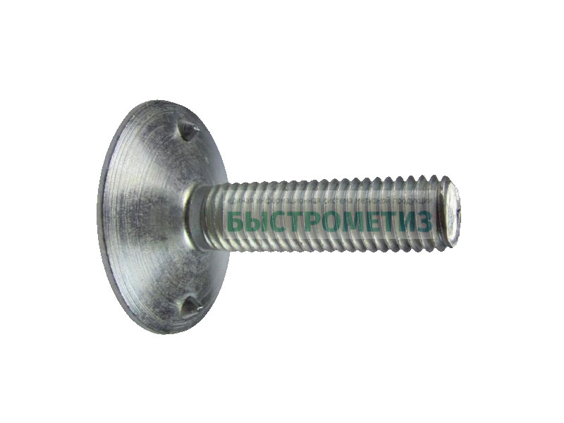 Конструкция болта состоит из плоской головки с наравляющими шипами с углом 60 градусов и цилиндрического стержня с резьбой.