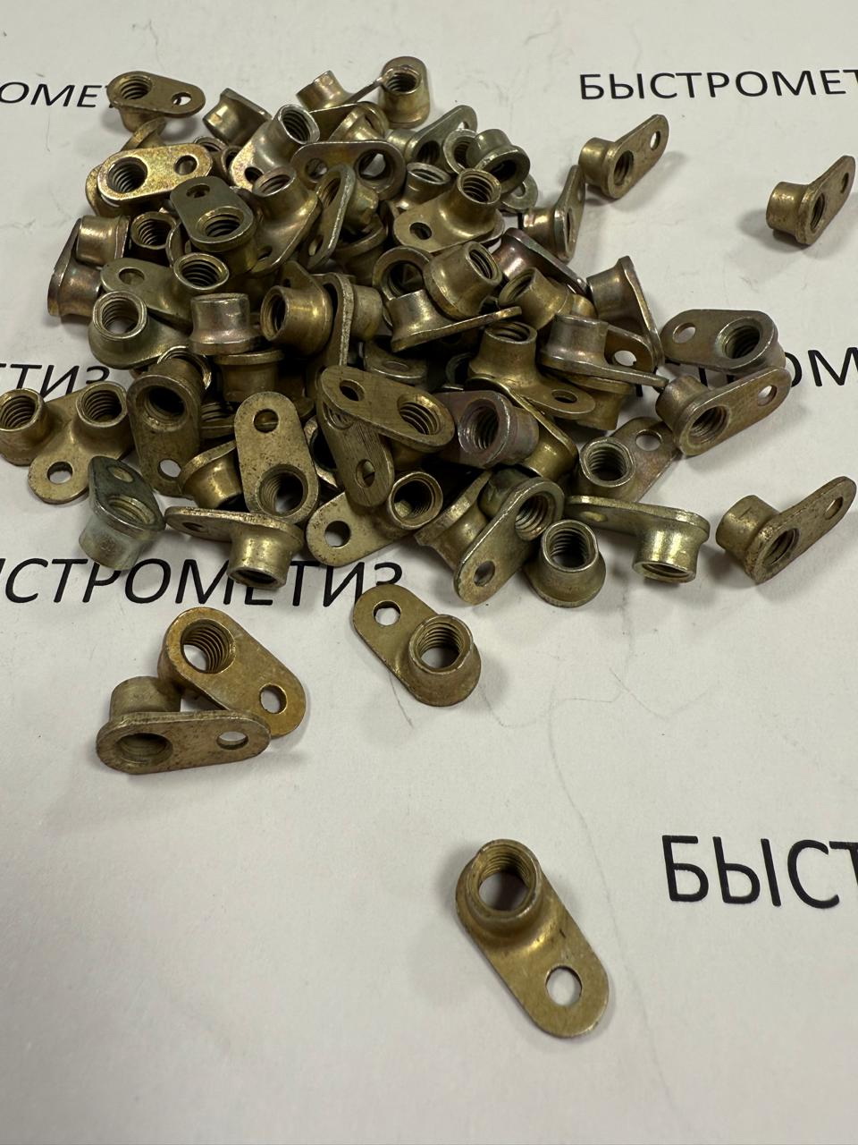 Конструкция гайки состоит из цилиндра с внутренним отверстием с резьбой и овальным основанием, в котором отверстие для крепления