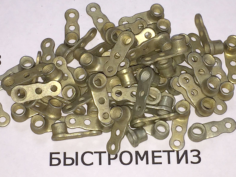 Конструкция гайки состоит из цилиндра с внутренним отверстием с резьбой и овальное основание, в котором два отверстия для крепления.