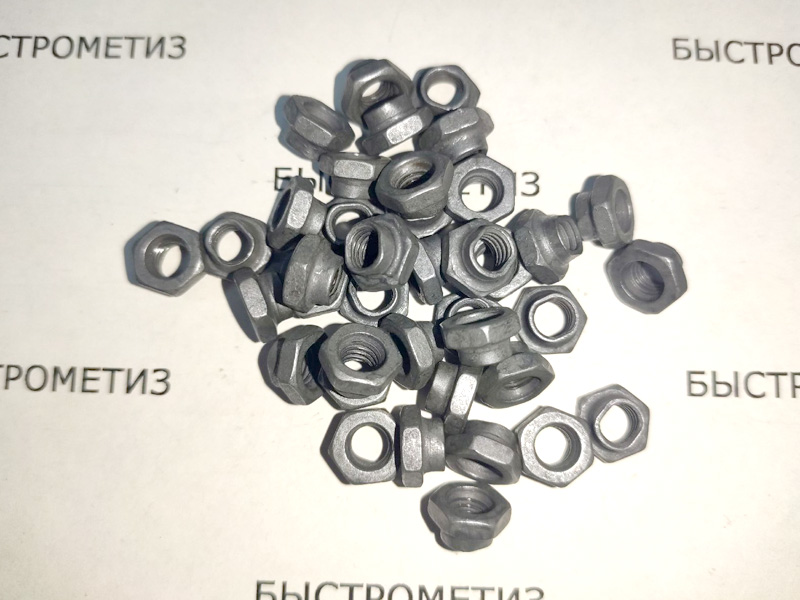 Конструкция гайки состоит из шестигранного стержня с обжатой вершиной и внутреннего отверстия с резьбой.