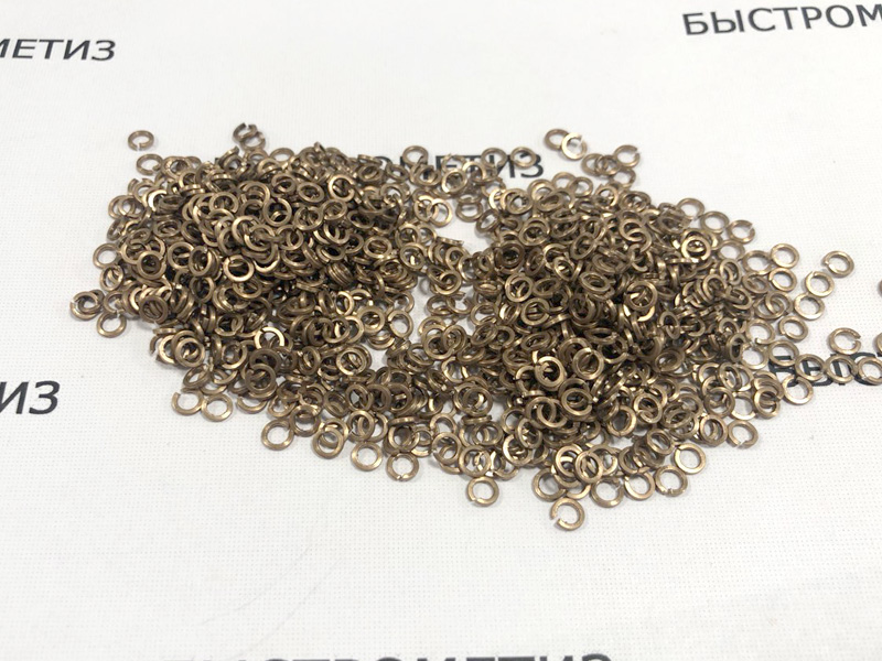 Материал изготовления должен быть из сплава ронзы Бр.КМц3-1 по ГОСТ 5222-72 для шайб диаметром от 2,1 до 10,2 мм..